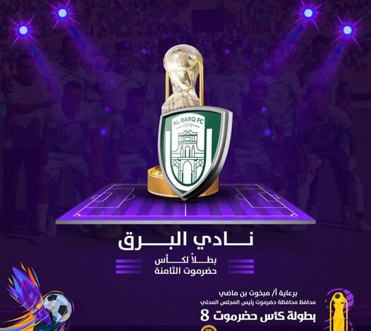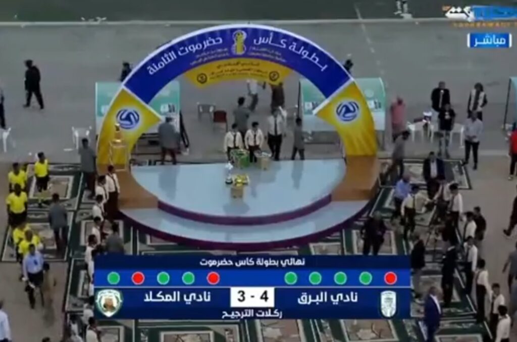 في عرس رياضي جماهيري شهدته محافظة حضرموت، حصد فريق البرق بتريم لقب كأس حضرموت لكرة القدم في نسختها الثامنة، بعد تفوقه على فريق المكلا بركلات الترجيح بنتيجة 4-3، في المباراة النهائية التي أقيمت عصر اليوم الجمعة 25 أكتوبر 2024، على استاد سيئون الأولمبي. انتهت المباراة بالتعادل الإيجابي 1-1 في وقتها الأصلي، وسط أجواء رياضية استثنائية وحضور جماهيري تجاوز 60 ألف مشجع من مختلف أنحاء المحافظة.